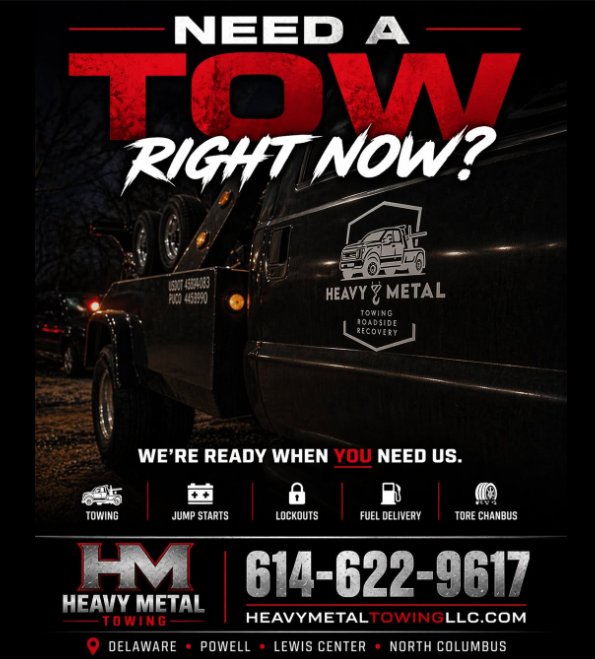 Stuck on the side of the road? Dead battery, flat tire, or won’t start at all—we’ve got you covered. Heavy Metal Towing delivers fast, reliable service when you need it most. No games, no waiting around. Serving Delaware, Powell, Lewis Center & North Columbus 614-622-9617 www.heavymetaltowingllc.com